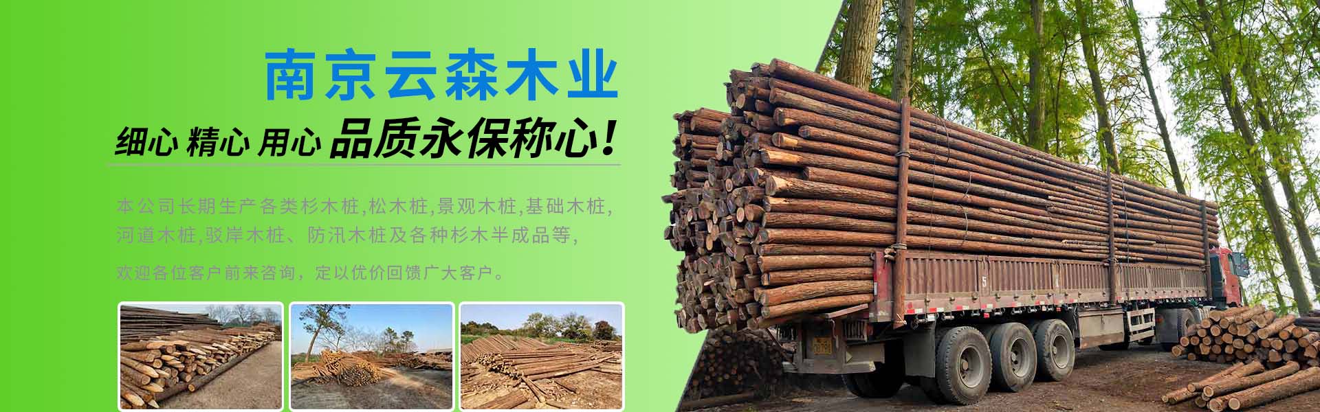 南京市云森木業(yè)有限公司位于南京市高淳區(qū)。是一家生產加工,線上銷售為一體的現(xiàn)代化企業(yè)。擁有完善、科學的質量管理體系及工作團隊。 公司主營松木樁,杉木樁,打樁木,河道木樁,駁岸木樁,防汛木樁,景觀木樁、園林綠化支撐桿等,也可支持方料,木板等木材定制加工產品,所選原材料均為黃山中心林區(qū),樹齡均在三十年左右。質地緊密,樹形優(yōu)美。 本公司貨源充足,供貨能力強,地處高淳,交通方便利,江浙滬皖送貨上門,當天可達。本著“誠信為本,客戶至上”的經營宗旨,真誠希望與您合作。 歡迎各位客戶前來咨詢,定以優(yōu)良品質和價格回饋廣大客戶。